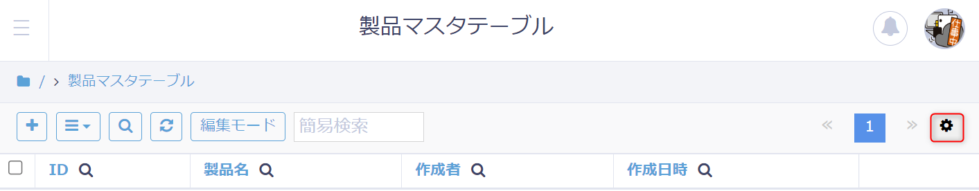 トップ画面右上の設定アイコンをクリックして、テーブル設定画面を開きます。
