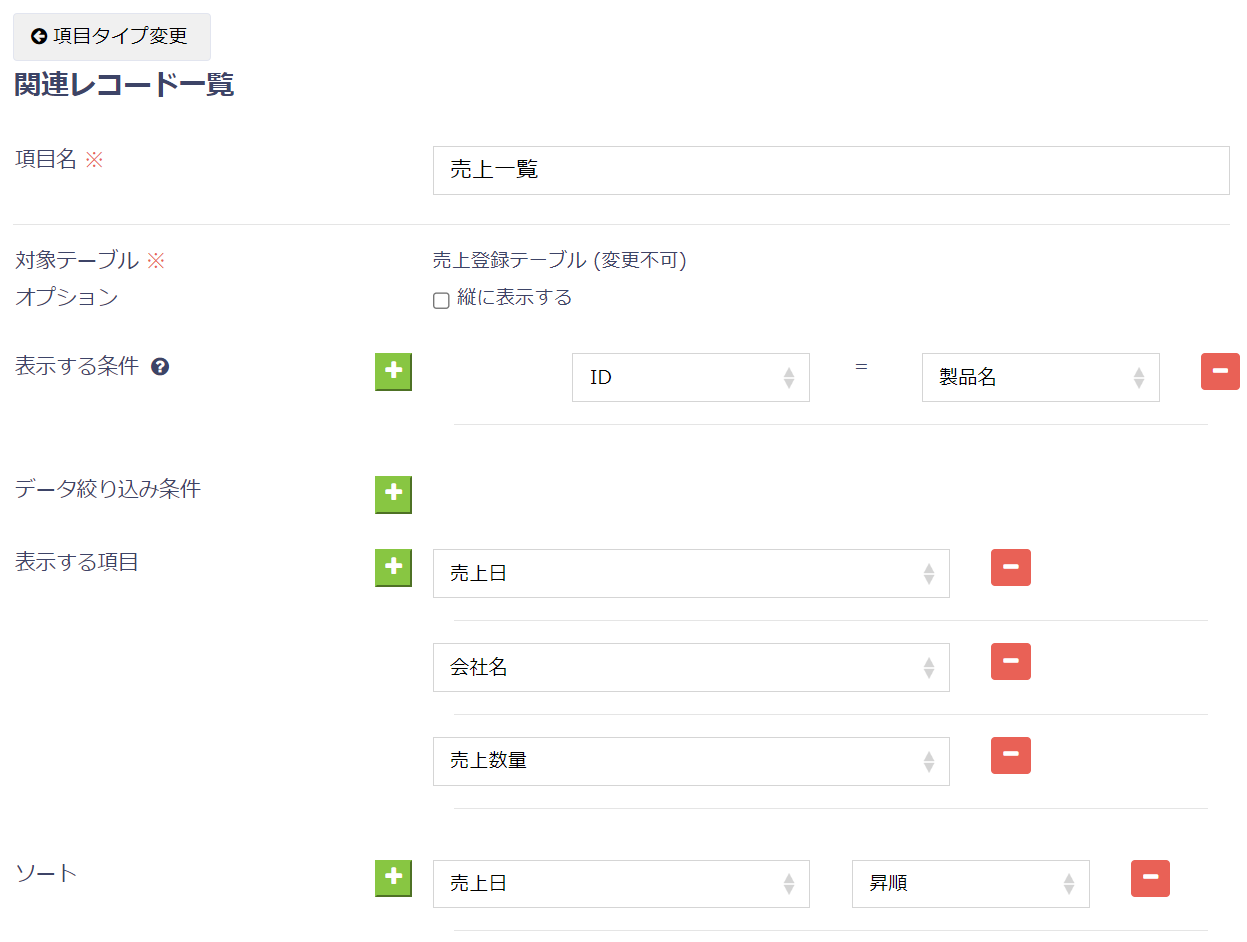 項目タイプ:関連レコード一覧