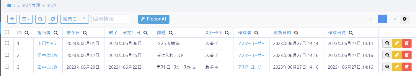 ※以下はあくまでサンプルであり、PigeonCloudを活用するイメージを持っていただくための例ですので、入力テキスト等細かい点は運用に合わせて適宜変更いただいて問題ありません。