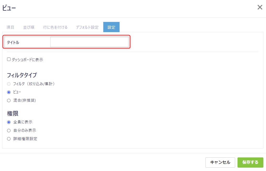「設定」タブをクリックし、タイトル欄に集計の名前を入力します。