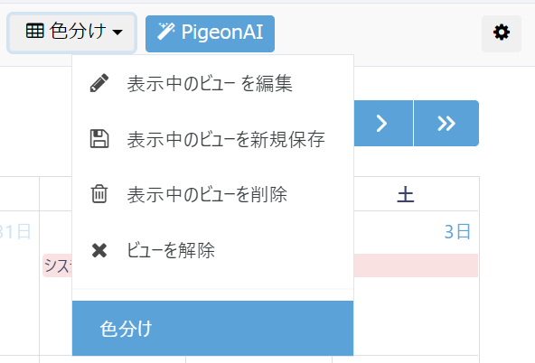 PigeonCloudではカレンダー表示の設定を有効にしたうえで、予定の種別によって色分け表示をすることが可能です。