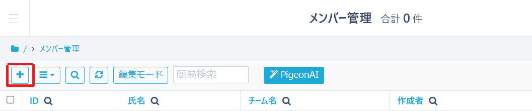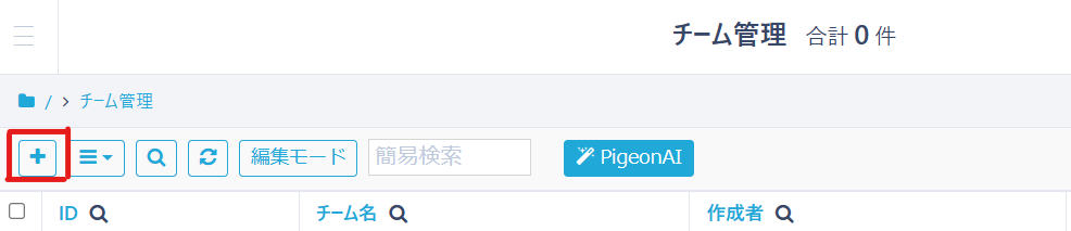 「メンバー管理」テーブルの作成が完了したら、レコードを登録してみます。先に「チーム管理」のレコードを登録しておきます。