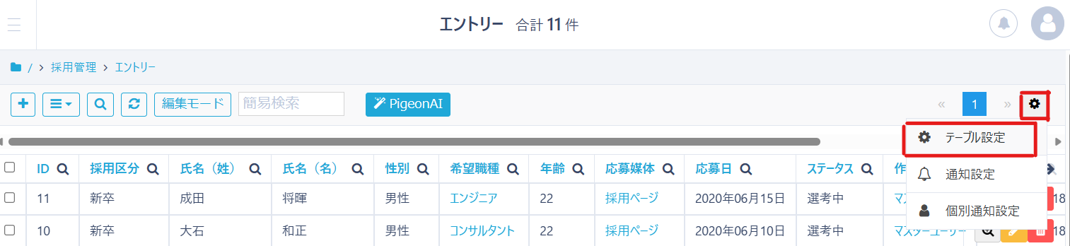 「一覧テーブルからの検索ボタンを表示」を有効にした場合