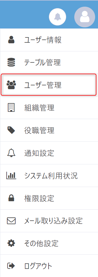 右上メニューのアイコンをクリックし、「ユーザー管理」を選択します。